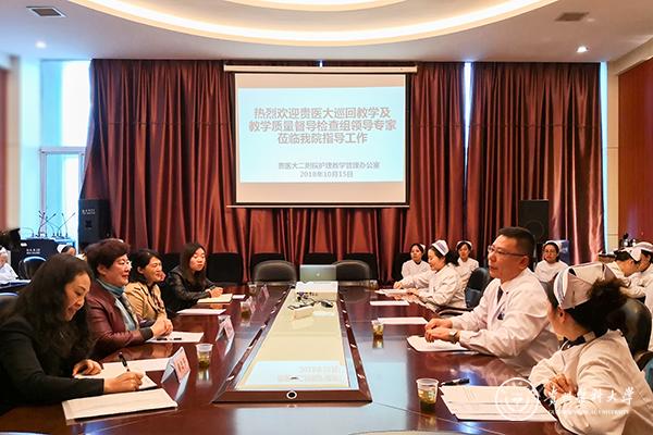 为进一步规范临床实践教学,提高毕业实习教学质量,10月10日至11月9日,在学校教学质量监控与评估办公室副主任左临轩的带领下,护理学院院长贾秀英、副院长刘志燕、生产实习科科长柳忠燕、辅导员李颖一行前往太阳成集团tyc33455cc官网附属医院、第二、三附属医院、附属白云医院、附属肿瘤医院、附属省人民医院、附属妇女儿童医院、贵阳市第四人民医院、贵航贵阳医院、省二医、大学城、世纪城社区等各实习基地进行了毕业实践教学质量检查及巡回教学。
