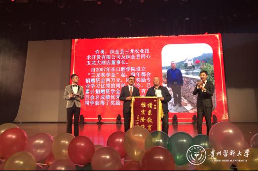 此次迎新晚会邀请到了许勇先生,许勇自2007年在口腔学院设立“三龙奖学金”,并每年捐赠资金两万元,用于奖励专业学习优秀的同学。