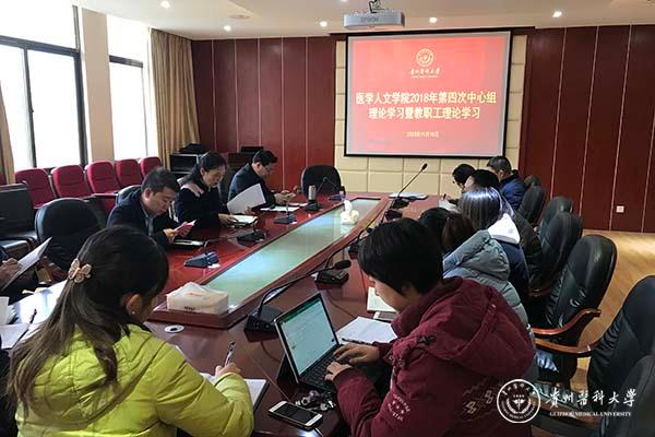 11月19日,医学人文学院召开2018年院党委中心组第四次理论学习暨教职工理论学习会,学院党委班子、党支部书记、党支部委员及各科室中心负责人参加,学院党委书记徐贵荣主持会议。