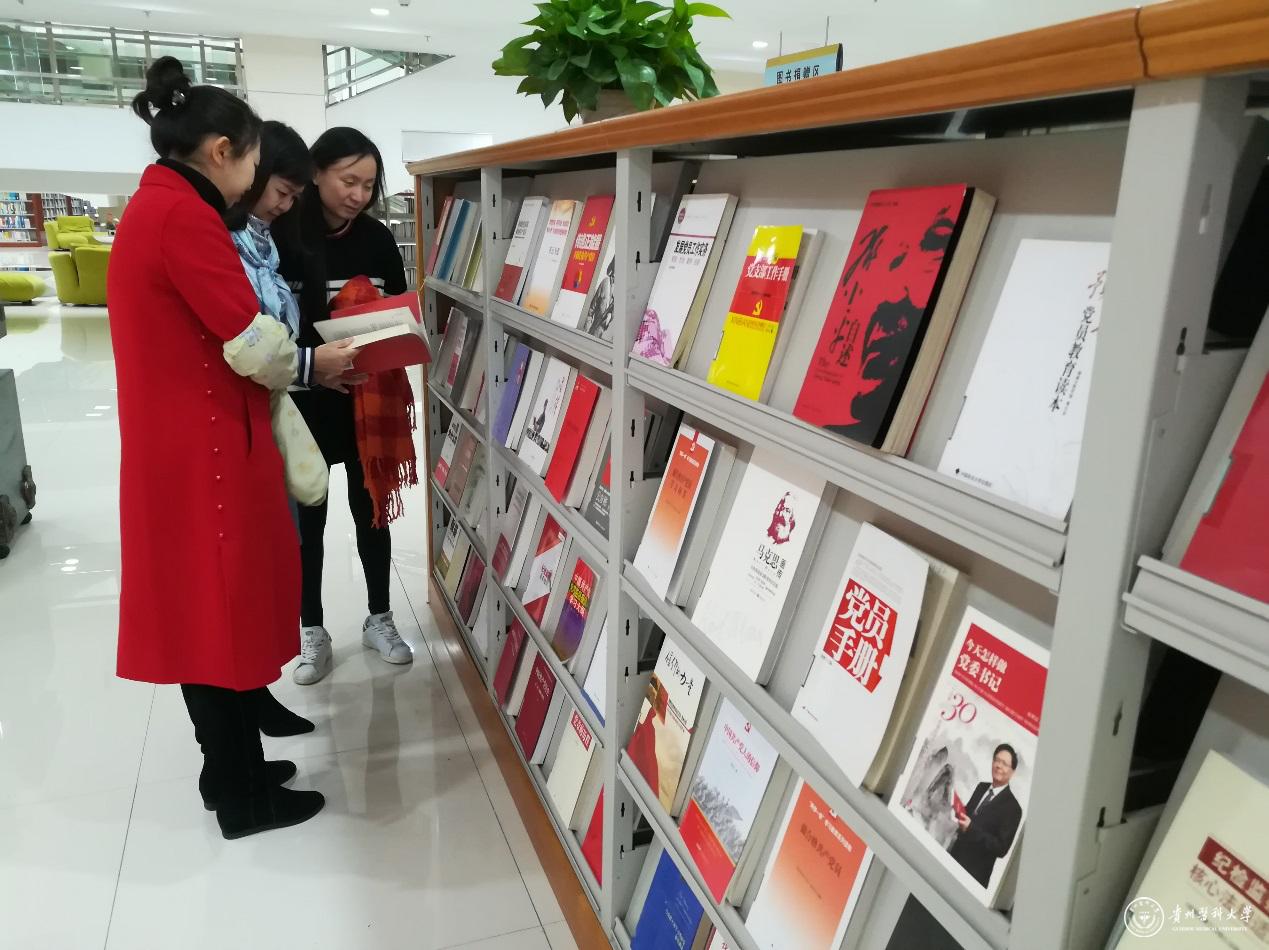 在展出不到一天的时间里,展示架上部分图书已被读者借走。比如经典理论《资本论》、《思想巨人马克思》,伟人传记《毛泽东与共和国非常岁月》《邓小平的历程》,党史类图书《建党伟业》、《中国共产党简史》,以及“两学一做”学习教育和党风廉政建设方面的《党员廉政必修课》、《雷锋精神在当代》《做最好的党员》、《“两学一做”学习教育百问百答》等一系列精品图书,还有新时代中国特色社会主义理论著作《习近平谈治国理政》等。这些图书是当代大学生树立正确人生观、励志成才的鲜活教材,是党员干部锤炼党性、提升素质的生动范本。