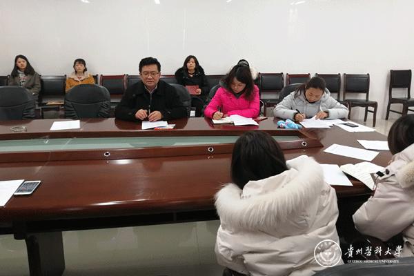 1月7日,基础医学院在务本楼会议室召开2018年度教工、学生党支部书记述职评议会。基础医学院党政领导、职能科室负责人、党支部书记参加。会议由副处级组织员邓欣主持。