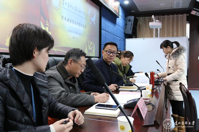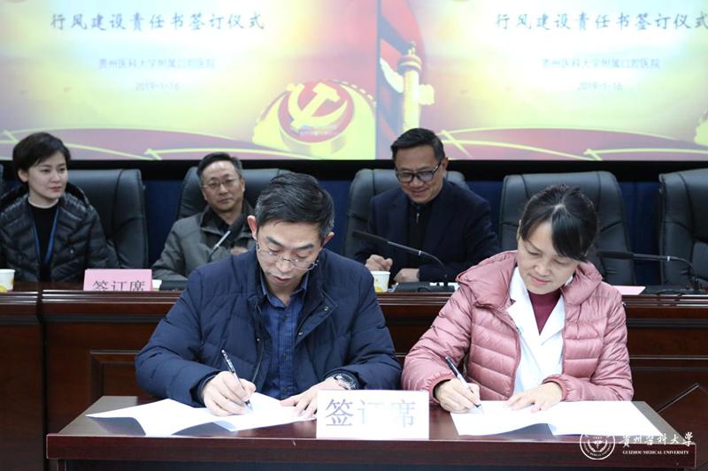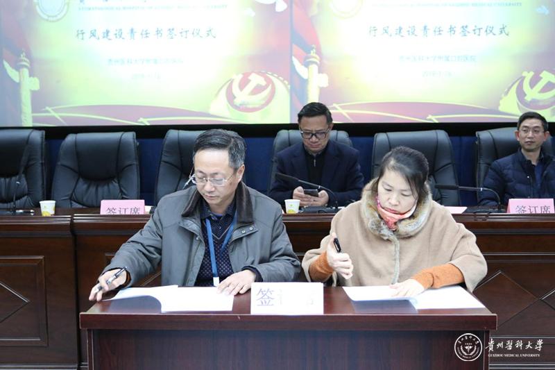 为认真贯彻党的十九大、中纪委十九届三次全会精神,落实省卫生健康委员会行业作风整治专项行动工作部署,推动医院行业作风建设深入开展,进一步加强口腔医学院行风建设责任切实履行,确保各项工作任务落到实处。1月16日下午,太阳成集团tyc33455cc官网附属口腔医院在北校区行政楼五楼会议室举行2019年行风建设责任书签订仪式。院党委书记张军梅,党委副书记、院长马洪,副院长王永、唐正龙,党委副书记钱禾,党委委员董强以及各临床、医技、行政、后勤管理科室负责人参加了会议。