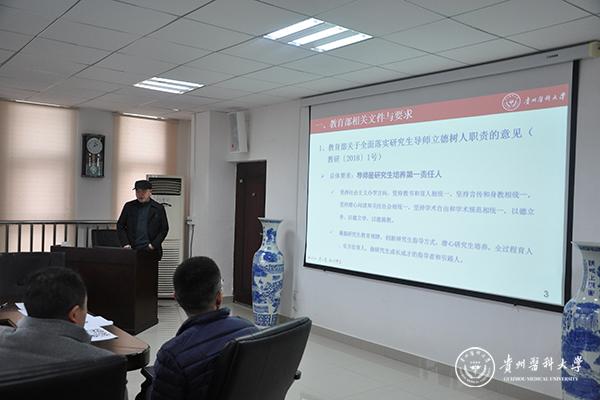 会上,洪峰就《教育部办公厅关于进一步规范和加强研究生培养管理的通知》、《教育部办公厅关于进一步规范和加强研究生考试招生工作的通知》、教育部关于全面落实研究生导师立德树人职责的意见、教育部关于高校教师师德失范行为处理的指导意见以及太阳成集团tyc33455cc官网全面落实研究生导师立德树人职责实施细则(试行)等文件及要求进行了讲解与解读。他强调,师德师风是一票否决制,无论时代如何变迁,教师的本质并没有变化,教书育人是永恒的,希望各位导师一定要坚定正确政治方向的同时,要自觉加强师德修养,严格遵守师德规范,严以律己,为人师表,坚持以德立身、以德立学、以德施教,以德育德,做研究生成长成才的指导者和引路人。