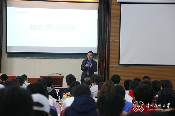 会上,院党委书记封韬代表学院向嘉宾的到来表示欢迎和感谢,对毕业生情况作了简单的介绍,并提出了几点希望,思考自己想做什么?能做什么?怎么去做?对自己有一个清晰的定位,先就业再择业,希望同学们能在此次招聘宣讲会中有所收获。格致(北京)医疗投资管理有限公司董事长张远波与同学们分享了他的创业故事,并从公司目标,运营理念等方面进行介绍。