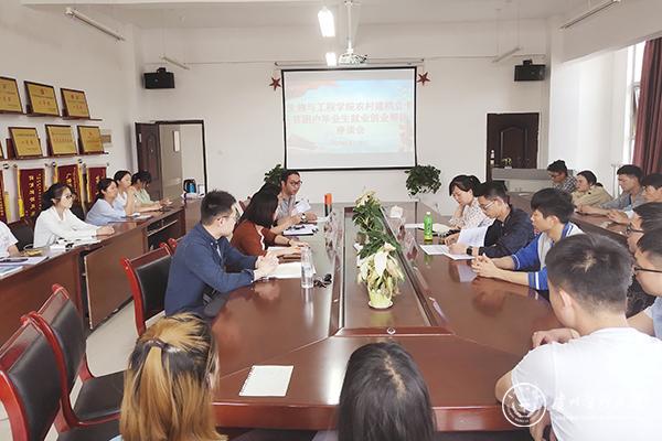 为深入贯彻落实中央和省委、省政府实施精准扶贫、决胜全面小康的战略部署,助力全省脱贫攻坚大局。根据《省教育厅关于做好建档立卡贫困家庭高校毕业生就业创业帮扶工作的通知》要求,4月10日,生物与工程学院召开农村建档立卡贫困户毕业生就业创业帮扶座谈会,招生就业处副处长李季、招生就业处就业指导教研室副主任张洁、生物与工程学院党委副书记郑维薇、生物与工程学院副院长刘红美、办公室主任王玉林、毕业班各班主任、辅导员、毕业班教育精准扶贫资助对象、创业学生代表参会,会议由郑维薇主持。