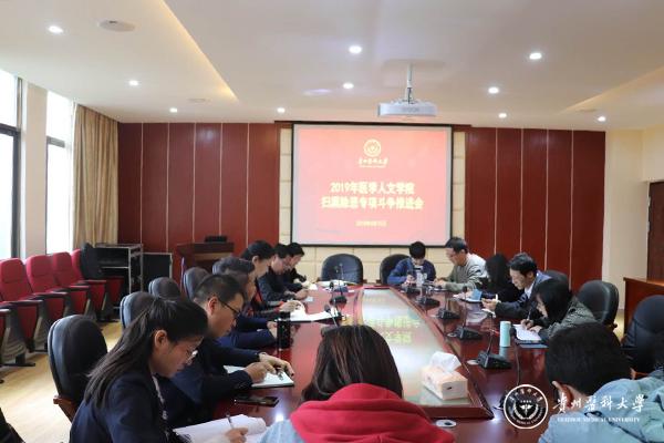 4月15日,医学人文学院扫黑除恶专项斗争推进会在善思楼四楼会议室举行。学院党政班子成员,学院各党支部书记、各科室、各教研室及中心负责人参加会议。院党委书记徐贵荣主持会议,院党委副书记张健通报了学院开展扫黑除恶专项斗争工作情况,并对照上级文件精神,结合本院实际情况,就下一阶段扫黑除恶宣传教育、线索排查、综合治理以及各项工作落实进行了具体安排和部署。