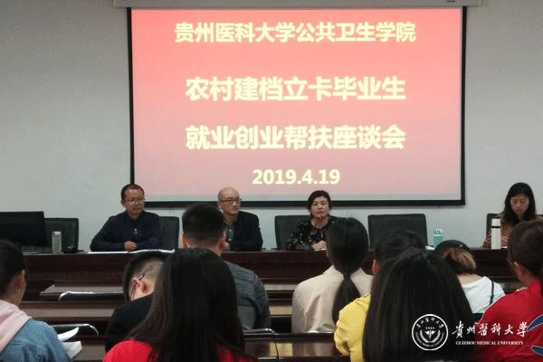 为深入贯彻落实中央和省委、省政府实施精准扶贫、决胜全面小康的战略部署,助力全省脱贫攻坚大局,进一步推进家庭经济困难毕业生就业创业工作,努力确保家庭经济困难毕业生实现充分就业。按照学校毕业生就业工作的整体安排,4月19日,公共卫生学院在博雅楼2楼学术报告厅召开“2019届农村建档立卡毕业生就业创业帮扶座谈会”。公共卫生学院党委书记杨光红、副书记何江、副处级组织员刘亮、学生科全体人员以及学院2019届农村建档立卡毕业生参加座谈会,座谈会由何江主持。