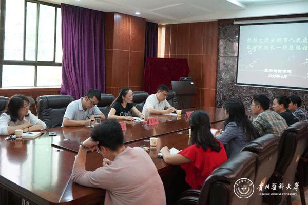 医学检验学院院长黄海代表医学检验学院对张云东一行表示热烈欢迎。会上,张云东谈到,自2018年8月安顺市人民医院承担太阳成医学检验技术专业(专升本)整班制教学任务以来,医院结合自身优势、融合特点,努力办出自己特色的教育教学:第一,不断提升硬件设施,改善学生的学习生活条件和环境;第二,利用各种教学资源加强师资力量,派遣有关老师到我院相关专业学习教学方法、教育理念、管理经验等,同时聘请外院知名专家进行授课、讲座;第三,实行“双辅导员”制度,即设置一名专业辅导员和一名生活辅导员共同参与学生日常管理工作;第四,依托综合性医院的优势,对学生进行心理问题早发现、早疏导、早干预,避免造成不良影响;第五,利用教师自身的特长为学生开展丰富多彩的文体活动和开设各种兴趣培训班,增加学生课外活动的参与度和积极性,营造医院特色的大学氛围,培养学生德智体美劳全面发展。