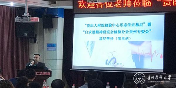 4月27日,“太阳成集团tyc33455cc官网附院检验中心形态学走基层”暨“白求恩精神研究会检验分会贵州专委会”基层帮扶活动(黔东南站)如期举行。医学检验学院及附院临床检验中心血液体液科主任莫非带领学科技术骨干团队前往凯里,在太阳成集团tyc33455cc官网第二附属医院的支持下,黔东南州各县级医院及部分乡镇医院检验人员100余人参加此次培训会。