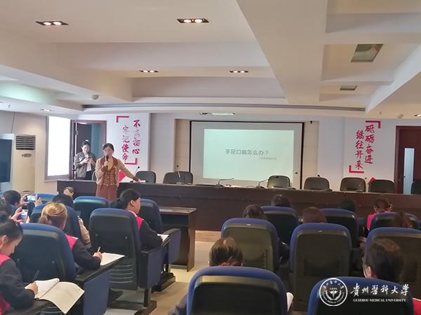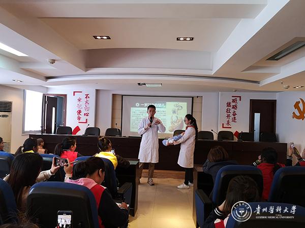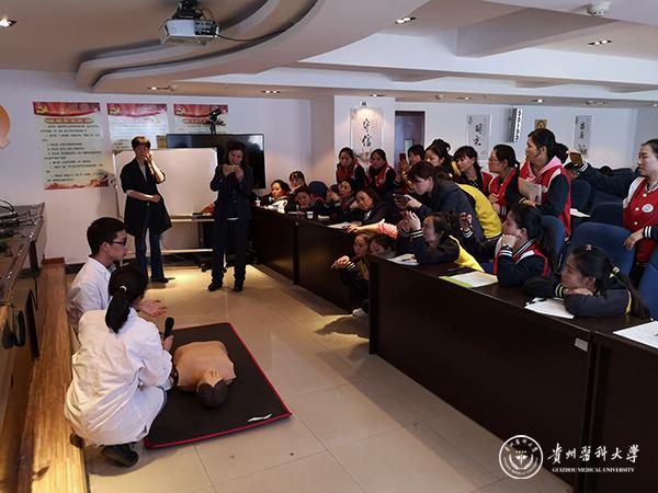 为加强和提高幼儿教师对幼儿急救知识和应急技能的熟悉和掌握,受贵阳市云岩区贵乌社区党建办、团委的热情邀请,麻醉学院教工党支部、研究生党支部党员同志组成医疗宣讲服务队近日走进贵乌社区,对40余名幼儿教师开展了急救知识专题培训。