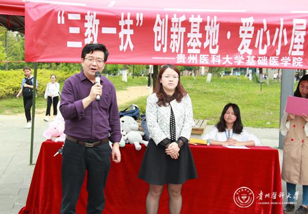 党委副书记王妤煜向大家介绍了我院“三教一扶”创新基地-“爱心小屋”的背景和意义。该项目获学校思想政治教育工作创新基地立项,依托生命科学馆、党员接待室、心灵驿站、爱心小屋,以“专业教育、思想教育、心理教育、贫困生帮扶”为载体进行立体思想政治教育。