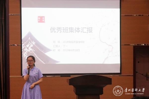 各班级学生代表以PPT演说的方式从班级思想建设、组织建设、学风建设等进行了汇报,各班级在本学年的学习工作中自主设计了班徽、班训、班服,编排了班歌,有完善的班级管理制度与班级目标,形式多样,展现全面,充分突出了各班级特色。本着树立典范,鼓励积极进取的原则,基础医学院2018级最终评选出临床医学A班、B班、E班三个优秀班集体。