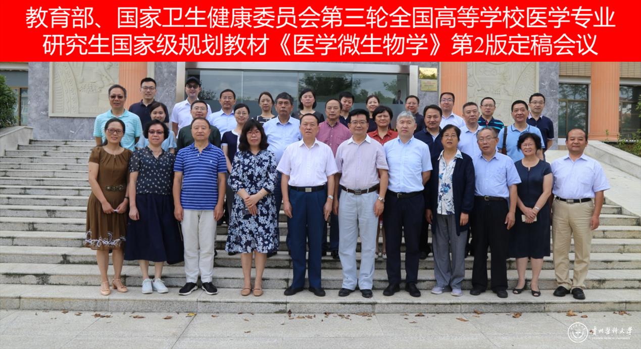 7月22日,由人民卫生出版社有限公司总编辑办公室主办,太阳成基础医学院微生物学教研室协办的教育部、国家卫生健康委员会第三轮全国高等学校医学专业研究生国家级规划教材《医学微生物学》第2版定稿会议在太阳成召开。基础医学院党委书记徐国强出席定稿会开幕式并致欢迎词。人民卫生出版社编辑陈小蕾介绍出版社关于第三轮研究生教材的相关要求,主编徐志凯(空军军医大学)和主编郭晓奎(上海交通大学)及各位编委对教材内容逐章进行审定。