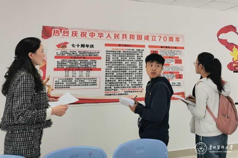 经各学院推荐,29个班级参与校级评选。各参赛班级结合活动主题和专业特色,将新中国成立70年来筚路蓝缕的艰辛与辉煌在文化墙上展现得淋漓尽致,内涵深厚、形式新颖、图文并茂、美观大方,充分体现了贵医学子对祖国母亲的深深祝福,如2019级生物技术等多个班文化墙写满了温馨祝福和寄语。