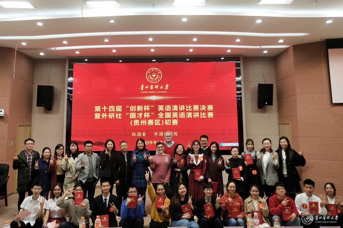 10月17日,由校团委、外国语学院主办的第十四届“创新杯”英语演讲比赛决赛暨外研社“国才杯”全国英语演讲比赛(贵州赛区)初赛在太阳成南校区电教化中心举行。外国语学院党委书记张婷婷、校团委副书记何为、麻醉学院党委副书记黄兰、外国语学院党委副书记马琳娜、及其他二级学院的领导老师参加。外国语学院院长龙芸、副院长冉海勇、英语系主任余兰、翻译系系主任曾天娇、大学外语教研室临时负责人赵国静、院语言实验中心负责人何晓涛、外籍教师Carter Henderson七位教师担任比赛评委。外国语学院教管科副科长张文龙老师、外籍教师Leora Kurtzer担任提问嘉宾。