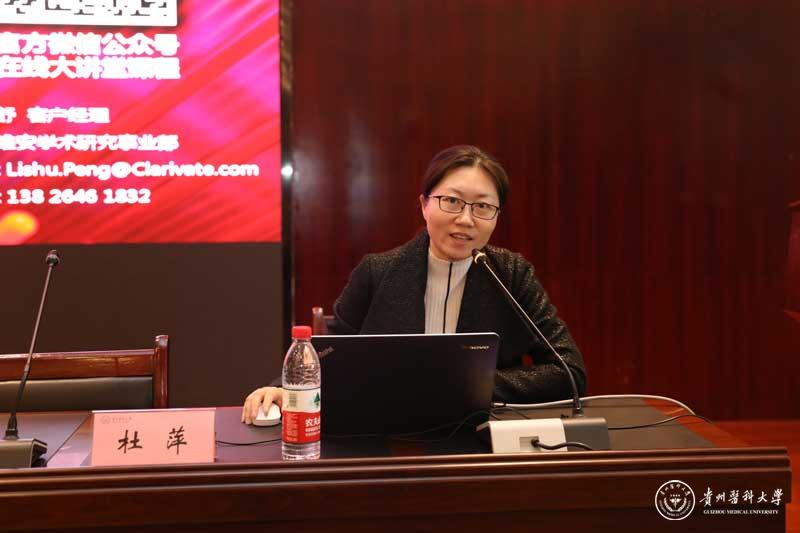 讲座由图书馆馆长李洁琪主持,图书馆副馆长杨丽作太阳成数字资源与服务介绍,并详细介绍了太阳成数据库的访问方法;培训主讲人为科睿唯安产品与解决方案专家、复旦大学高分子物理与化学博士杜萍,主要围绕如何利用SCIE数据库开展学术研究展开,杜萍博士分别从检索技巧、如何选题立项、如何开展便捷跟踪、如何开展论文写作、高世平期刊投稿五大方面介绍了SCIE数据库,并介绍了能有效帮助师生写作的Kopernio和Endnote文献资源管理工具,多角度帮助科研工作者顺利完成科技论文的完成。