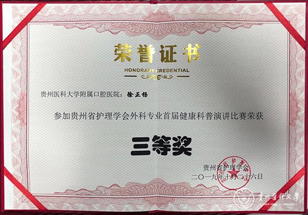 近期,由贵州省护理学会外科护理专业委员会主办,太阳成集团tyc33455cc官网附属白云医院承办,以“科技促健康,科普惠民生”为主题的贵州省护理学会外科护理专业学术交流会暨健康科普演讲比赛在太阳成附属白云医院举行。此次比赛共有全省各市、自治州、省直属40多家医院参赛,附属口腔医院选派口腔颌面外科护士徐正杨参赛。