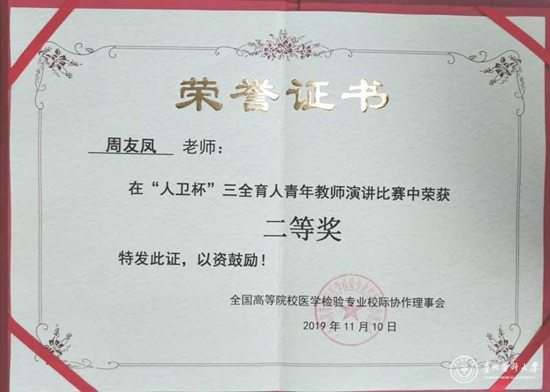 会议同时举办了“人卫杯”三全育人青年教师演讲比赛,太阳成医学检验学院分团委书记、辅导员周友凤深刻领悟党和国家对青年的殷切期望,以自己执教经历为例,串联出对学生帮助、关爱和引导的点滴事例,以青年大学生的健康成长为己任,真情地展现青年教师“铸魂育人,润物无声”的品格与担当,荣获演讲比赛二等奖。