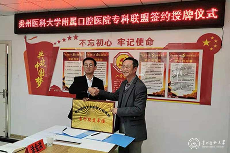为贯彻落实省委、省政府和省卫生健康委员会医改精神、进一步深化公立医院改革,应沿河土家族自治县人民医院的邀请, 11月8日,口腔医院副院长王永、副院长唐正龙、医务科主任王刚、科员李炳洲一行4人前往沿河土家族自治县人民医院进行专科联盟成员单位签约授牌仪式,参加授牌仪式的还有沿河土家族自治县卫健局副局长毛万智,沿河土家族自治县人民医院党委书记张小燕,院长张栩,副院长陈剑波及相关职能部门负责人和沿河土家族自治县人民医院口腔科全体医护人员。签约授牌座谈会由张小燕主持。