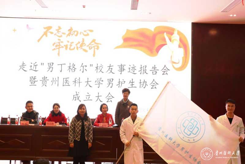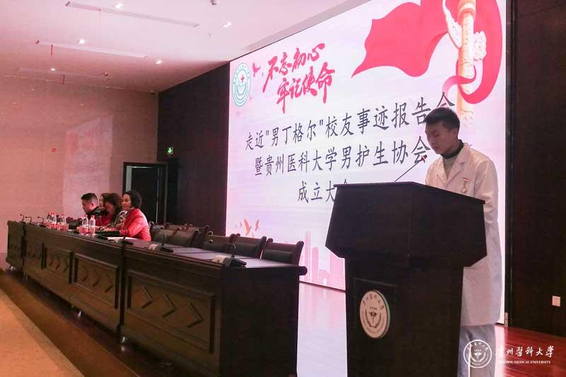 为进一步提升男护生的专业认知和学习兴趣,为男护生提供一个更广阔的学习交流和提升的平台,更好地帮助同学们做好职业生涯规划、坚定专业思想,并以此平台展示贵医男护生形象,让社会更多地了解男护生、了解护理,真正实现“无性别差异的护理”。护理学院12月17日在南校区道德讲堂召开“不忘初心、牢记使命”走进“男”丁格尔校友事迹报告会暨太阳成集团tyc33455cc官网男护生协会成立大会。校团委副书记桂晓玲、护理学院党委书记杨英、党委副书记王秀红、副院长刘志燕、校友贵州省人民医院急诊留观输液中心护士长杜伟、护理学院教师、男护生协会成员及各班学生代表参加大会,大会由王秀红主持。