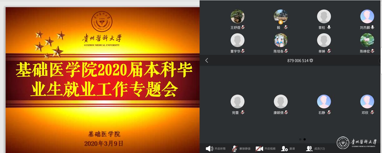 3月9日,基础医学院在网络会议上,针对2020届本科毕业生就业工作进行了专题研讨,院党政领导、党委委员、相关科室及辅导员参加会议。
