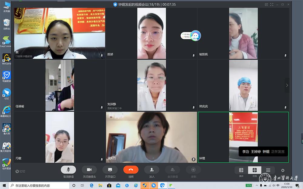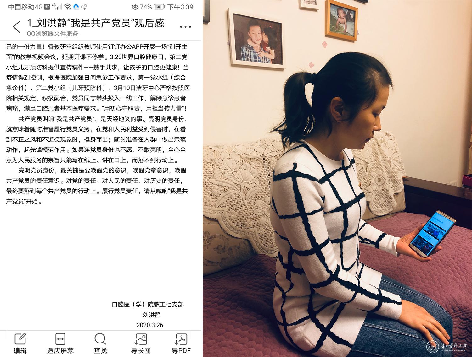 由于新型冠状病毒的侵袭,抗疫期间,口腔医院教工七支部坚决执行院党委的指示,将疫情防控作为第一要务。为使各项工作顺利开展,特殊时期,支部书记刘洪静提出了“党建+互联网,党组织生活不松懈”的党建工作模式,七支部全体党员积极响应。