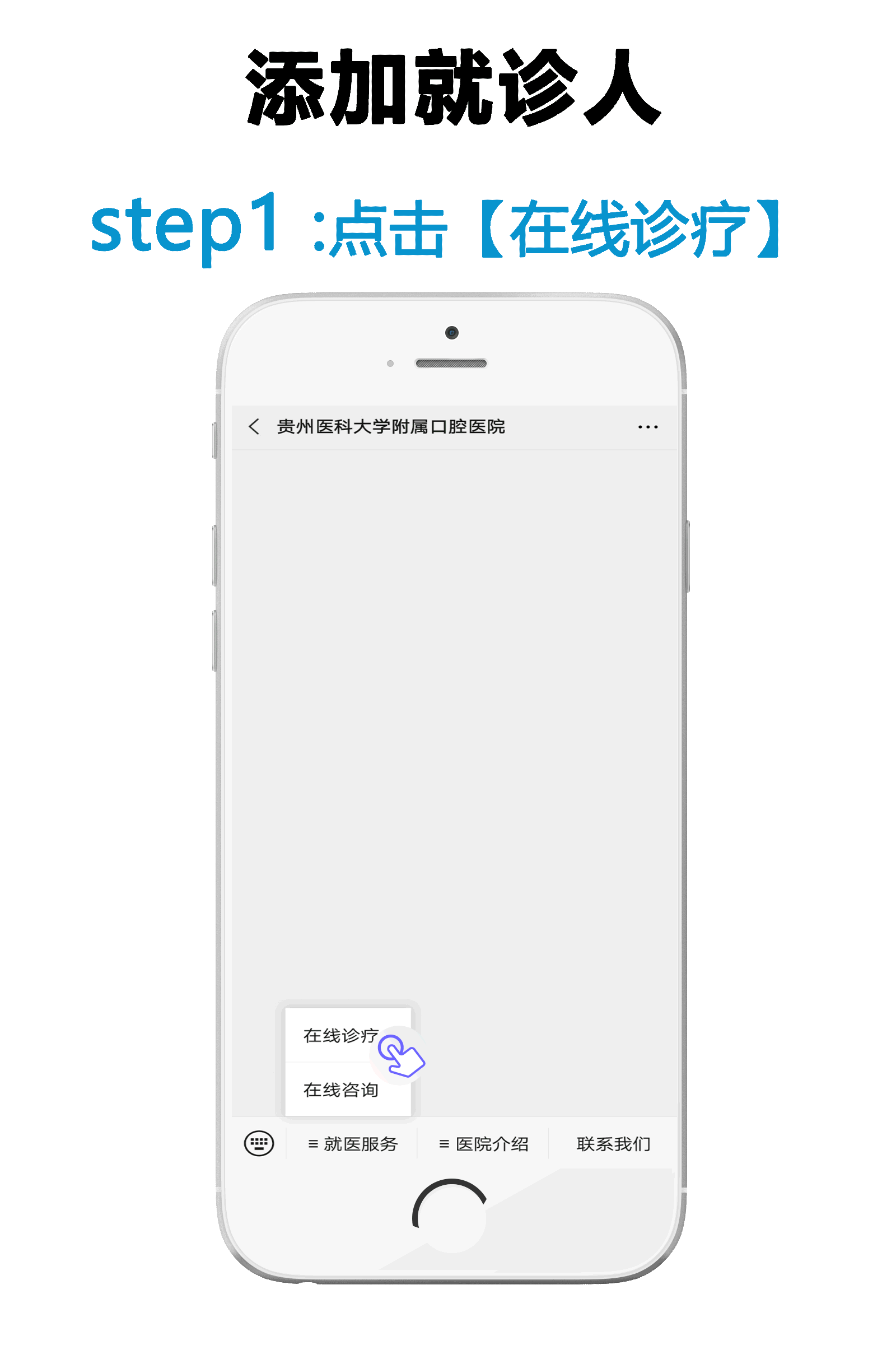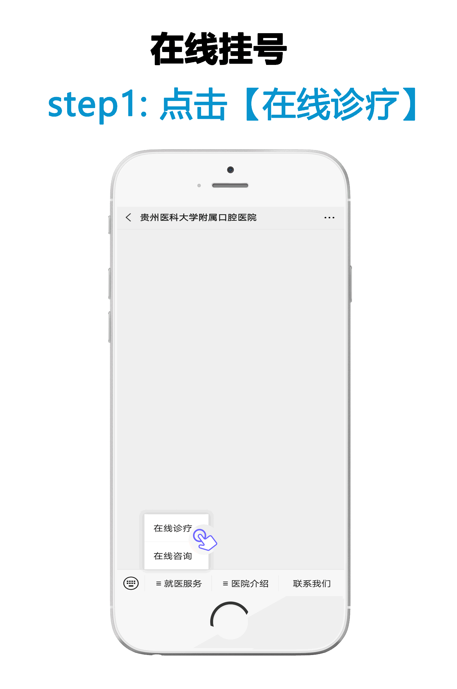 点击【挂号/预约】-需就诊科室名称-选择医生(预约挂号还需选择就诊日期)-选择就诊时间-确定就诊人无误后点击【确认挂号】-微信付款-挂号成功。