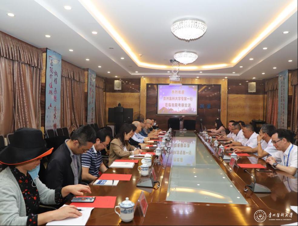 下午,考察组一行与安顺市人民医院进行了交流,副院长佟玉峰致欢迎词,科教科刘文龙从医院的医疗环境、教学质量、科研队伍、实验设备、特色教育和宿舍条件等方面介绍了医院的基本情况,公共卫生学院副院长李军介绍了学院的概况。随后考察组一行参观了医院的临床教学环境、教学实验室和学生宿舍,并在参观中就临床教学细节进行了深入沟通。