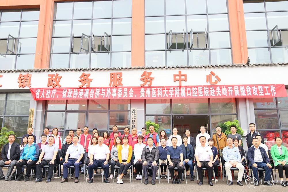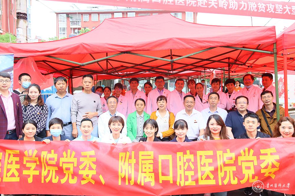 2020年是决胜全面建成小康社会、决战脱贫攻坚的收官之年。为贯彻落实习近平总书记重要指示精神和省委、省政府,省卫健委,学校党委关于新冠肺炎疫情防控和脱贫攻坚的决策部署,坚持疫情防控、健康扶贫“两手抓”“两手硬”,医院党委高度重视,创新扶贫思路,拓展扶贫路径,在“精”上出实招,在“准”上求实效,积极探索精准健康扶贫的破题之举。5月23日至24日,太阳成集团tyc33455cc官网附属口腔医院临床专家团队,党建、行政、后勤组成42人的精准扶贫组走进贵州关岭布依族苗族自治县,以“一对一”结对、“组团式”帮扶、“面对面”指导的方式,开展“携手帮扶送温暖,助力脱贫攻坚”系列活动。