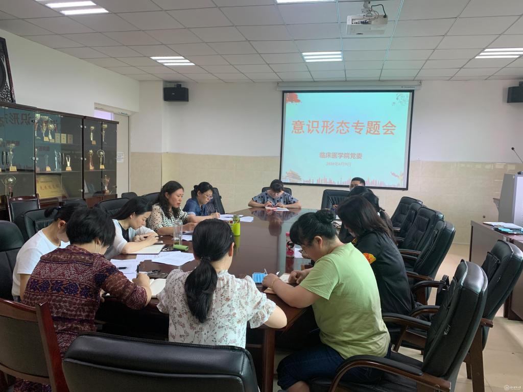 6月9日,临床医学院在学院4楼会议室召开意识形态工作专题会议,临床医学院全体人员参加了此次会议,会议由临床医学院党委书记周红主持。