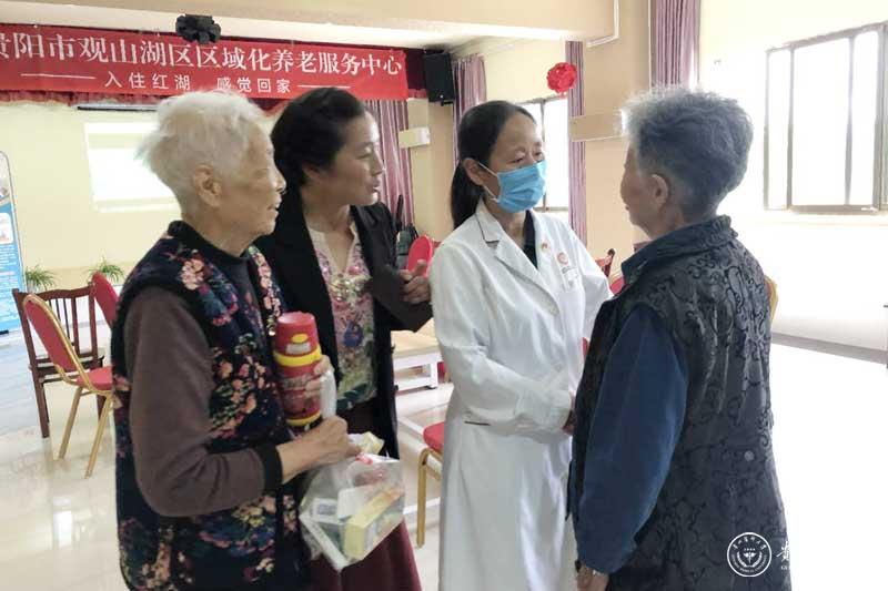 义诊现场,医护人员为老年人进行免费的口腔健康咨询及检查,进行血压、血糖等项目的检测,并送出护牙礼品,让老年服务中心的老年人足不出户就能享受到专业的口腔检测及诊疗服务。