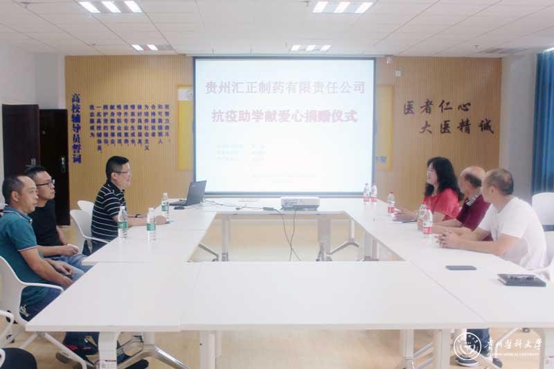 会上,罗旭介绍了公司基本情况,并表示在看到贵医援鄂抗疫之举后,深受感动,作为贵州的制药企业之一,在学校复学之际,尽自己所能出资出力,共同抗击疫情。通过这种方式,表达企业的一份心意,共同筑牢防疫战线,为学校保障正常的教学秩序和培养更多的医药人才尽绵薄之力,让更多的青年学子拥有一份“白衣天使”之梦而骄傲,托起一份“白衣天使”责任,奉献社会。