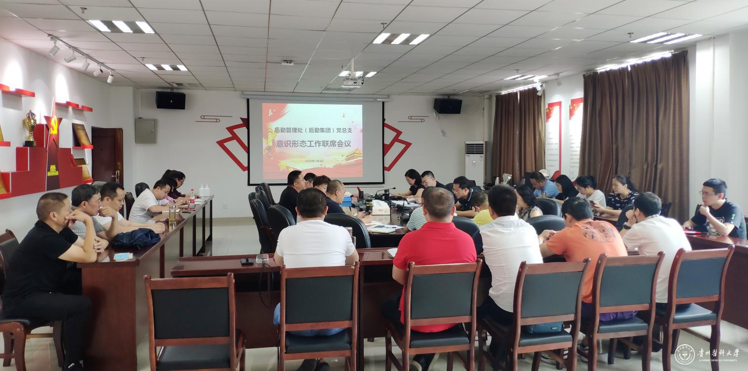 7月1日,后勤管理处(后勤集团)党总支在南校区颂雅楼五楼后勤会议室召开2020年意识形态工作联席会议,后勤党总支委员全体出席,党总支全体党员参加会议。会议由党总支副书记周云蓉主持。