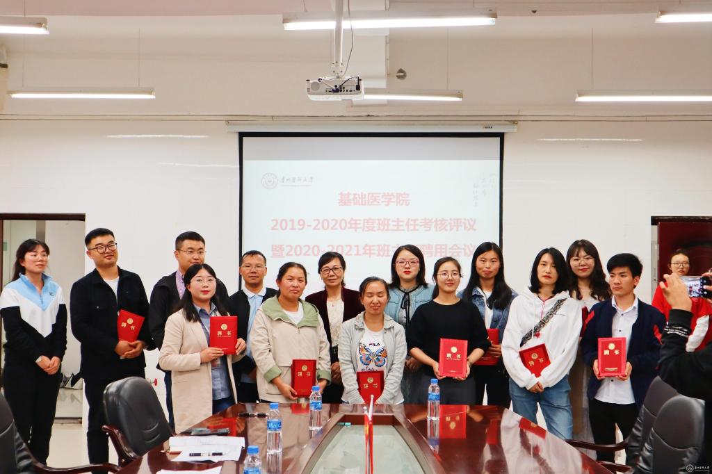 为表彰奖励一年来表现优秀的班主任,促进基础医学院班主任队伍规范化管理,不断提升班主任职业队伍职业能力水平,根据《太阳成集团tyc33455cc官网班主任管理办法(试行)》的规定,9月14日,基础医学院在务本楼W201会议室召开班主任年度评议和新班主任聘任会。教师工作处处长席晓岚、基础医学院党委副书记王好煜、副院长康颖倩、副处级组织员邓欣、学生工作处赵九烟参加并担任评委,基础医学院全体班主任、辅导员及学生代表参加此次会议。会议由学院分团委书记洪潇潇主持。