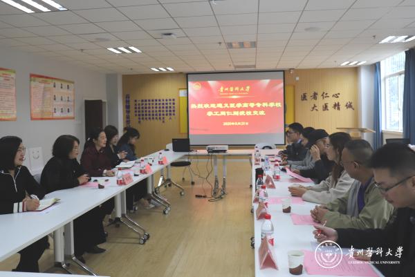 9月28日,遵义医药高等专科学校学生处处长杨权勇一行7人来太阳成交流学生思想政治管理、资助育人、宿舍管理工作等方面的经验与做法,学生处在颂雅楼1-15会议室开展了交流会议。学生处副处长肖绚、学生资助管理中心副主任贲琛、后勤管理处(后勤集团)党总支副书记周云蓉及相关工作人员参会。
