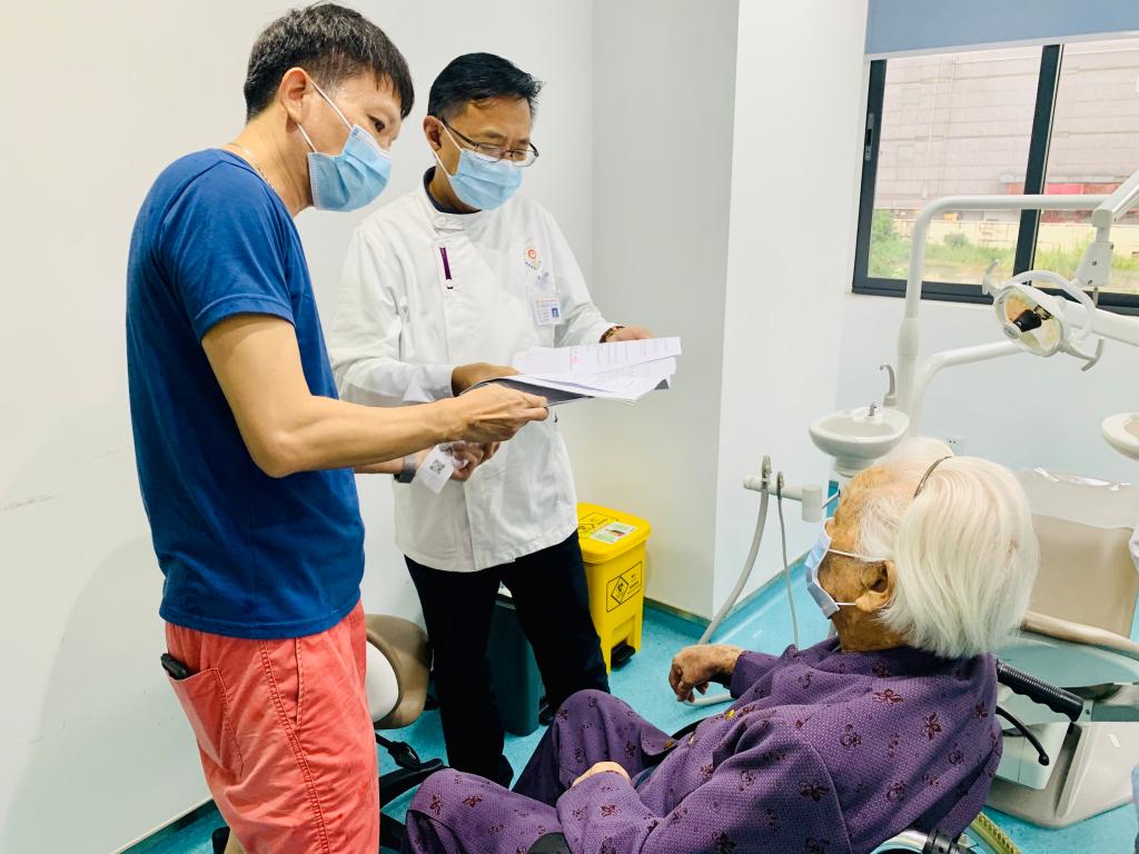 9月12日下午,一位满头银发的老奶奶在家人陪同下坐着轮椅来到太阳成集团tyc33455cc官网附属口腔医院深圳分院就诊。经了解,老太太已是93岁高龄,有一颗牙齿牙根折断需要拔除,存在听力障碍且有严重的基础疾病,在辗转深圳各大医院口腔门诊被拒后,家人抱着一丝希望上门求助。