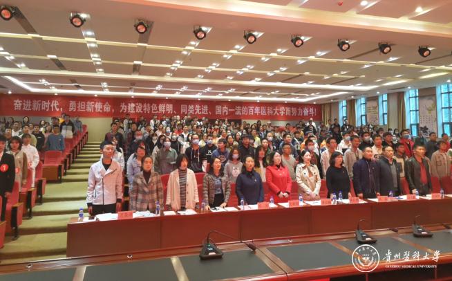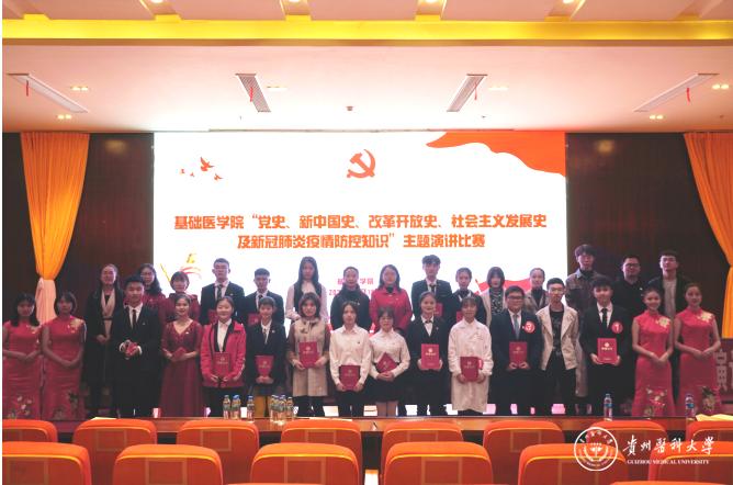 为扎实推进学生学好历史、用好历史,全方位全过程抓好大学生思想政治引领和价值引领,培养大学生知史爱党、知史爱国、知史爱校,践行初心使命,厚植爱国主义情怀。10月15日,基础医学院“党史、新中国史、改革开放史、社会主义发展史学习教育及新冠肺炎疫情防控知识演讲比赛”在南校区道德讲堂进行。校党委委员、组织部部长蒋红梅,校党委办公室主任杨毅,学生处副处长李宗梅,基础医学院党委书记付萍、党委副书记王妤煜、副院长刘杰麟、副院长张春林、副处级组织员邓欣,基础医学院学生科、分团委、全体辅导员及班主任,各班学生代表出席。本次比赛共有来自各年级推选的15位选手参加。