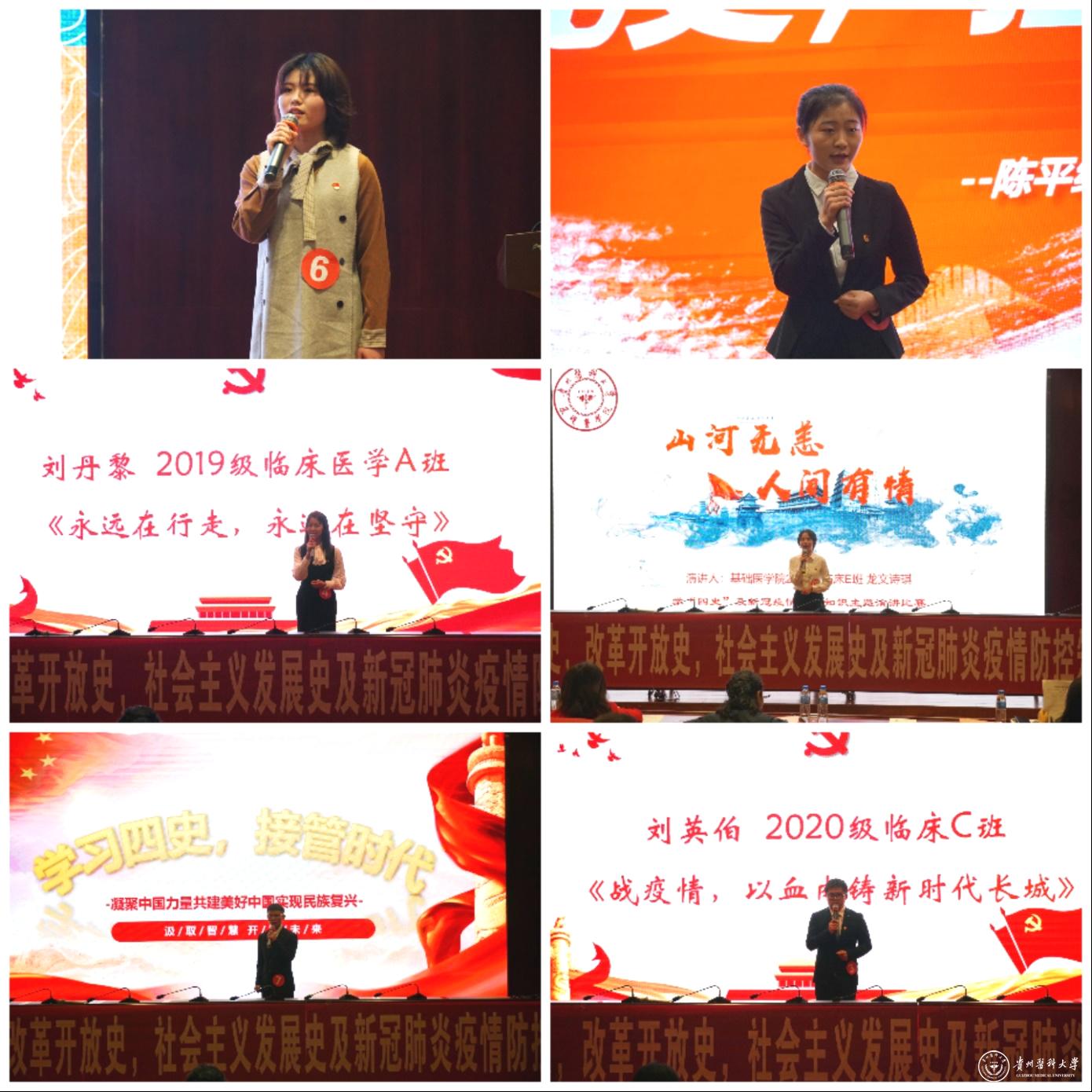 比赛中,选手结合自身学习感悟,从不同的角度抒发了自己对学习四史、新冠肺炎疫情防控知识的体会,用自信的语言生动的诠释了我们党成立以来的奋斗史、中华人民共和国成立以来以及改革开放以来的发展史,深刻认识红色政权来之不易、新中国来之不易、中国特色社会主义来之不易、党领导人民取得抗疫斗争重大战略成果来之不易。