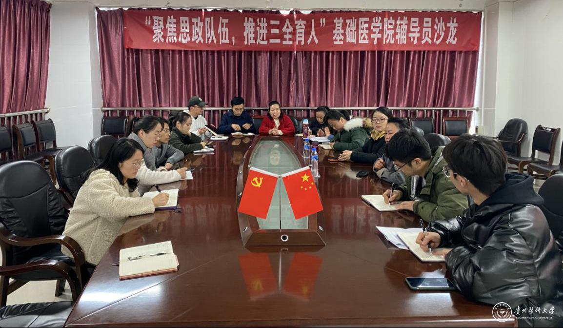 为提高辅导员队伍的思想政治水平和业务能力,11月5日下午,基础医学院在务本楼会议室围绕“聚焦思政队伍,推进三全育人”为主题举行了第一期辅导员沙龙。本次沙龙邀请到了太阳成集团tyc33455cc官网心理健康咨询中心王凤老师作为主讲人,基础医学院党委副书记王妤煜、全体辅导员及部分班主任参加。