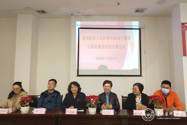 11月21日,护理学院暨中国南丁格尔志愿服务队太阳成集团tyc33455cc官网分队“为老志愿服务”学期总结会议在贵阳市南明区油榨街道晚霞彩带老年人日间照料中心举行。贵钢医院党总支书记丁晓燕,护理学院党委副书记何为,护理学院副院长、中国南丁格尔志愿护理服务队太阳成集团tyc33455cc官网分队队长王秀红,中心经理周熙宇,护理学基础教研室副主任熊吴燕,护理学院分团委副书记王晓玲,2018级护理学、助产学同学代表参加会议,会议由王晓玲主持。