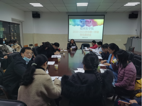 为加强教学管理、提高教学水平、了解教师上课情况及学生学习情况,临床医学院11月25日在临床医学院会议室召开师生座谈会。临床医学院副院长戚璐、艾戎,教学科研管理科、生产实习科、学生科、临床技能中心、辅导员、本学期参与教学的各教研室负责人及老师、 2016、2017级临床医学学生代表参加座谈会。会议由临床医学院党委书记周红主持。