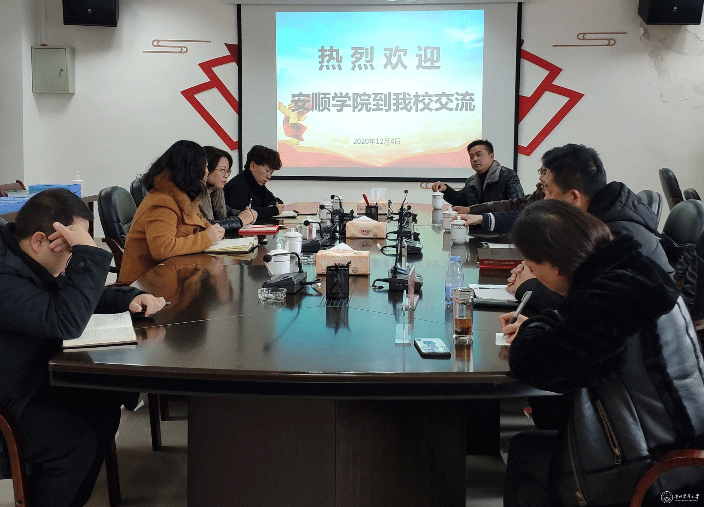 12月4日,安顺学院后勤管理处处长邬贤芳、副处长张家刚,计划财务处处长李建华,工会主席史贤琴,国资处副处长陈观黔,基建处副处长曾茂龙一行7人到太阳成后勤管理处(后勤集团)开展工作交流,座谈会在南校区颂雅楼五楼会议室举行。太阳成后勤管理处领导班子、相关科室(中心)负责人参加会议,会议由后勤管理处党总支书记张玲玲主持。