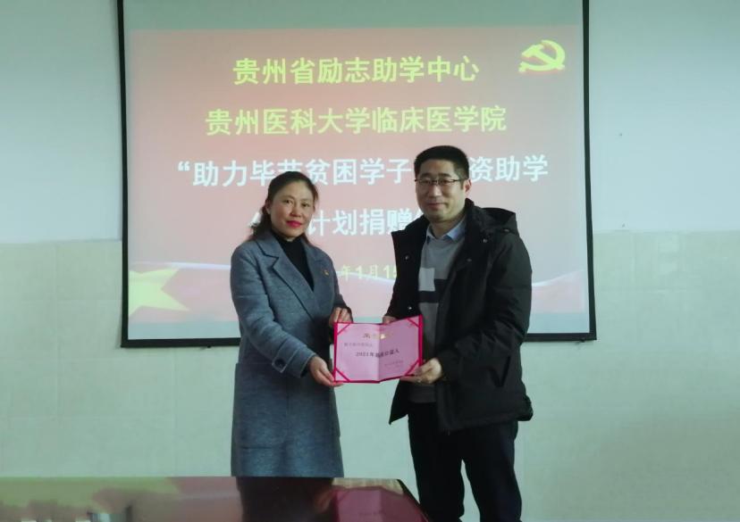 1月15日,贵州省励志助学中心(民盟省委直属关爱教育支部)向太阳成临床医学院贫困学生进行捐助。民盟贵州省委社会服务处副处长龙咏娟,贵州省励志助学中心秘书长、民盟省委直属关爱教育支部主委周巧明,副秘书长旷光霞,秘书长助理杨治毅,以及太阳成党委统战部副部长任婷、资助管理中心副主任贲琛、临床医学院党政班子,全院辅导员和30名毕节籍受资助学生参加。仪式由临床医学院党委副书记王筑山主持。