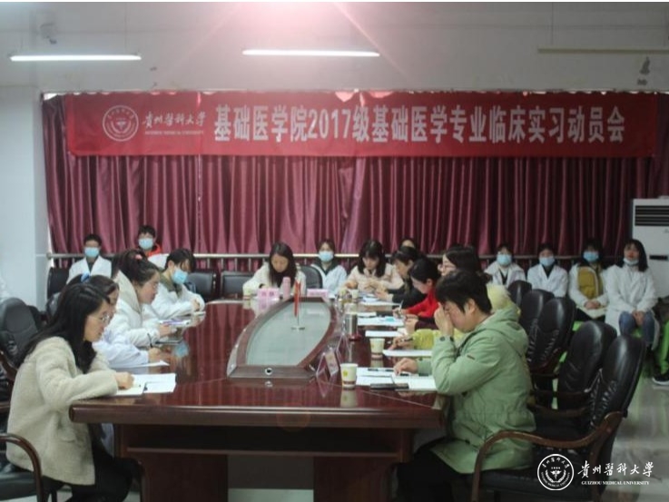 3月8日,基础医学院在务本楼W201召开2017级基础医学专业临床实习动员大会。院党委副书记王妤煜、副院长徐红、大学城医院副主任医师胡少瑾、护理部龙梅、教管科董宇华、肖静、学生科陈圆圆出席,2017级基础医学46名同学参加。