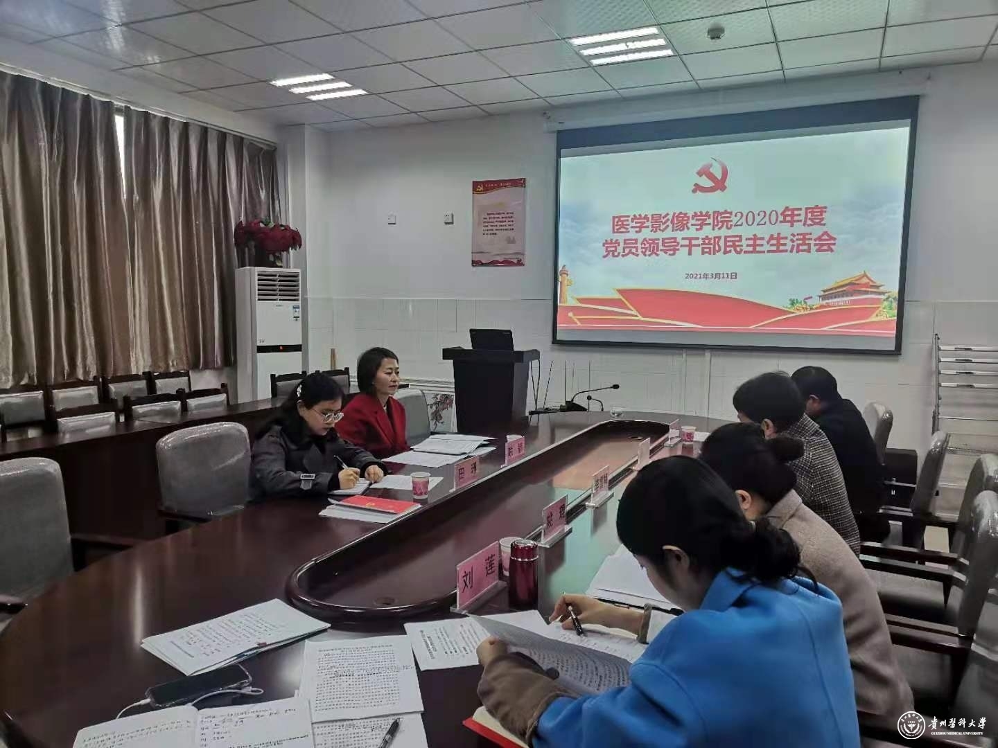 3月11日,医学影像学院党委2020年度民主生活会在北校区基础二号楼8楼会议室召开。会议由院党委书记李雪梅主持,院党委领导班子全体成员、各科室负责人、党支部书记、教研室党员代表参加。学校第一督导组组长、校党委委员、党委宣传部长、党委统战部长陈颖带队到会指导。