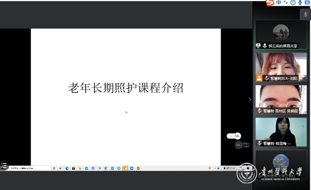 会上,苏州大学侯云英教授详细介绍苏州大学《老年长期照护》和《老年护理学》课程建设及教学计划、课程实施和成绩评定等情况。太阳成集团tyc33455cc官网《老年护理学》课程教学负责秘书王芸芸介绍该门课程的基本教学和成绩评定情况,王秀红分享两校在《老年护理学》课程中存在的交互点和区别及项目推进思考。田利转达苏州大学校领导和学院领导对项目的支持与关心,并对相关问题进行了介绍说明。双方就两校实施“慕课西行”的教学形式、同步课堂、考核形式等展开了深入的商讨,并就共建共享实施内容、形式和次数及下一步的工作计划达成一致。此次会议组织方“智慧树”代表表示将对双方项目的推进提供必要的设备和技术保障支持。
