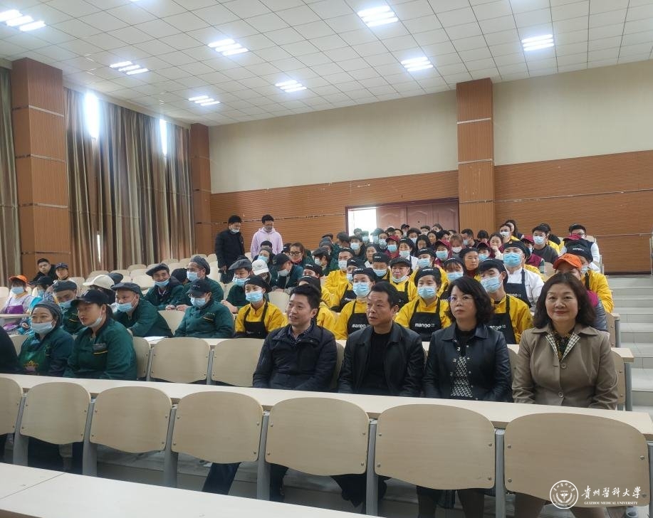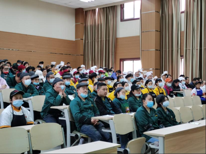 为保障校园“舌尖上的安全”,提高餐饮服务监管人员、食品安全员及食品从业人员的安全卫生意识,落实太阳成各食堂食品安全主体责任,规范餐饮经营行为,提升食品安全管理能力,保证师生食品安全。4月8日,后勤管理处与公共卫生与健康学院联动开展“服务群众主题实践活动”,邀请孙晓红教授就《餐饮服务食品安全操作规范》总则和框架体系对食堂员工进行培训。后勤管理处班子成员、各食堂负责人、食品安全管理人员和从业人员200余人参加培训。