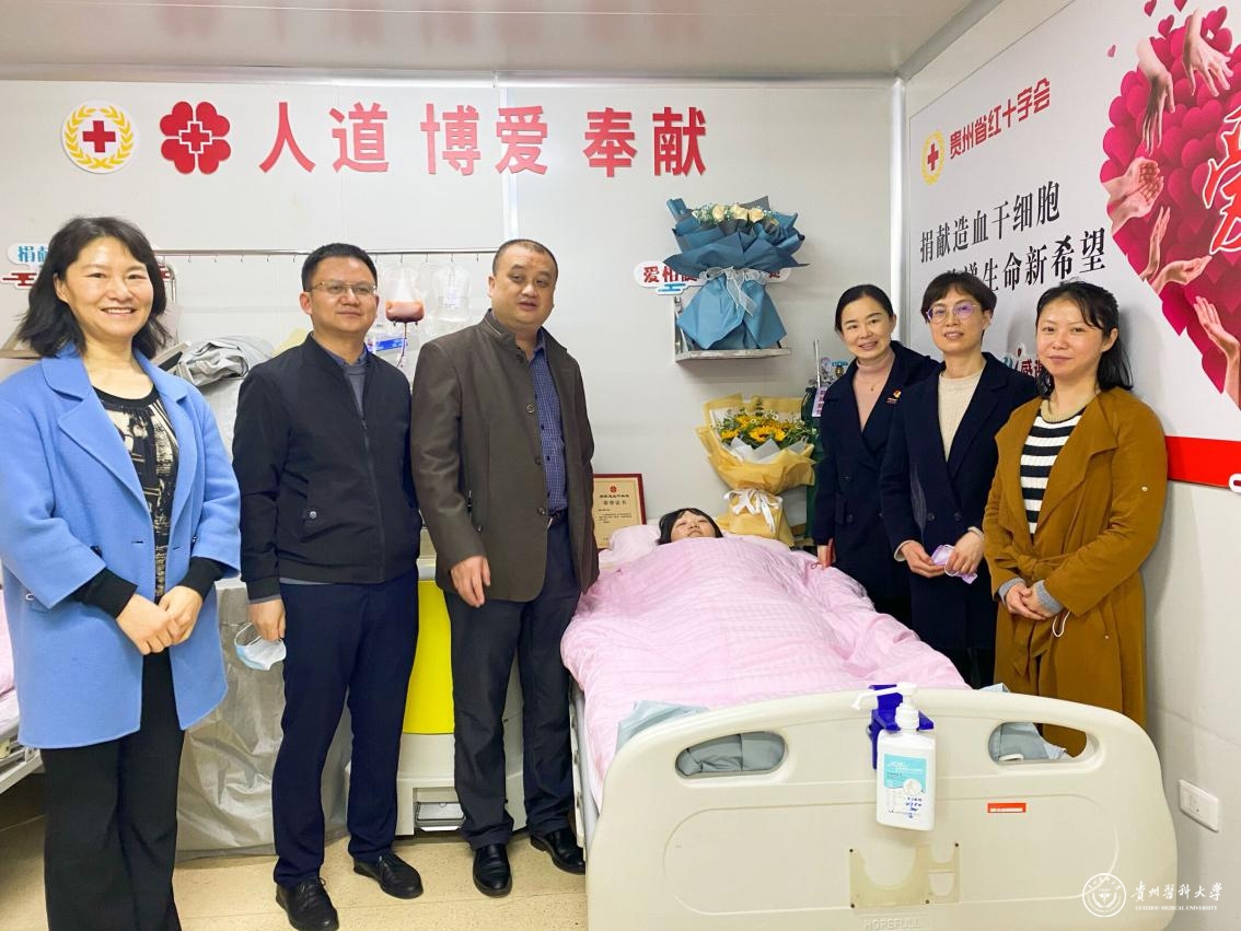 凝聚爱的力量,重燃生的希望。4月19日,麻醉学院麻醉学2019级学生张心媛顺利完成造血干细胞志愿捐献。太阳成集团tyc33455cc官网党委学生工作部部长王韬、校团委书记肖绚,省红十字会造血干细胞管理中心主任黄凤云,院党委书记李宏伟、正处级组织员黄兰、副书记吴彦嫢以及院学生工作的老师们一同到医院看望并慰问张心媛。