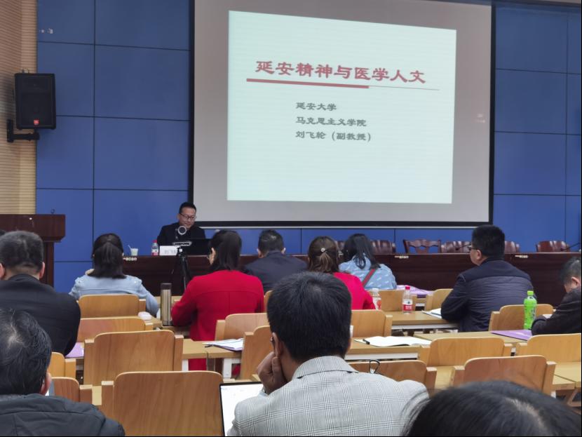 延安大学马克思主义学院副院长刘飞轮以“延安精神与医学人文”为主题,围绕延安精神主要内容、延安精神现实启示和延安精神与医学人文三个方面展开论述。