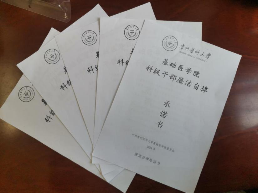基础医学院党委与基础医学院科级干部签订了廉洁自律承诺书。